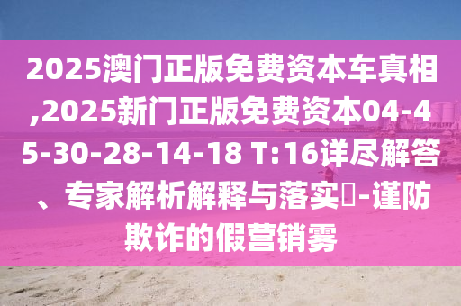 2025澳門正版免費資本車真相,2025新門正版免費資本04-45-30-28-14-18 T:16的詳盡解答、專家解析解釋與落實?