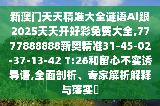 新澳門天天精準大全謎語Ai跟2025天天開好彩免費大全,7777888888新奧精準31-45-02-37-13-42 T:26和留心不實誘導語,全面剖析、專家解析解釋與落實?