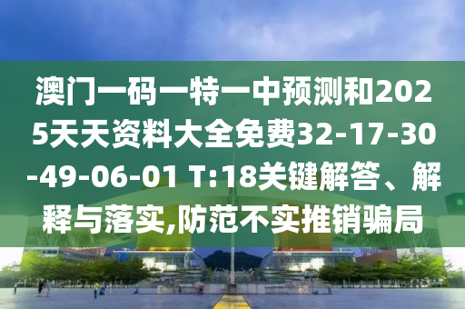 澳門一碼一特一中預測和2025天天資料大全免費32-17-30-49-06-01 T:18的關鍵解答、解釋與落實
