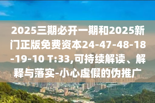 2025三期必開一期和2025新門正版免費資本24-47-48-18-19-10 T:33的可持續解讀、解釋與落實