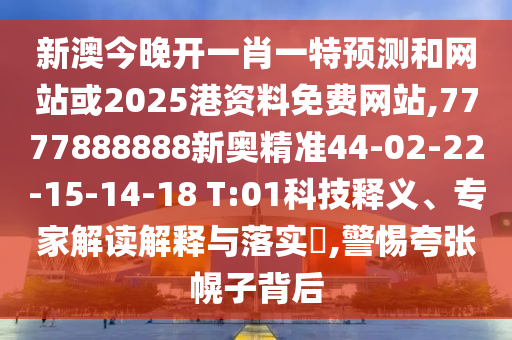 新澳今晚開一肖一特預測和網站或2025港資料免費網站,7777888888新奧精準44-02-22-15-14-18 T:01科技釋義、專家解讀解釋與落實?,警惕夸張幌子背后