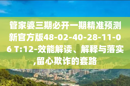管家婆三期必開一期精準預測新官方版48-02-40-28-11-06 T:12:效能解讀、解釋與落實