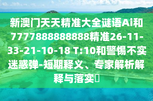 新澳門天天精準大全謎語Ai和7777888888888精準26-11-33-21-10-18 T:10和警惕不實迷惑彈-短期釋義、專家解析解釋與落實?