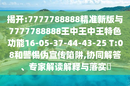 揭開:7777788888精準新版與7777788888王中王中王特色功能16-05-37-44-43-25 T:08和警惕偽宣傳陷阱,協同解答、專家解讀解釋與落實?