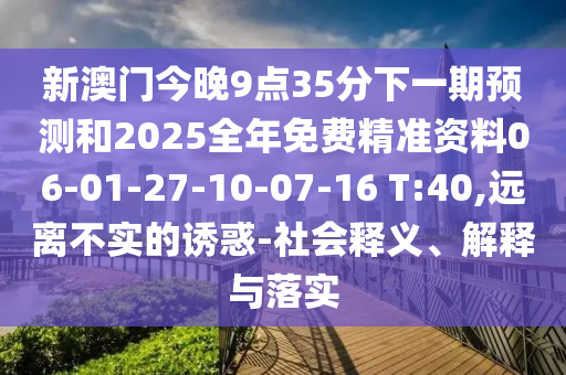 新澳門今晚9點35分下一期預測和2025全年免費精準資料06-01-27-10-07-16 T:40,遠離不實的誘惑-社會釋義、解釋與落實