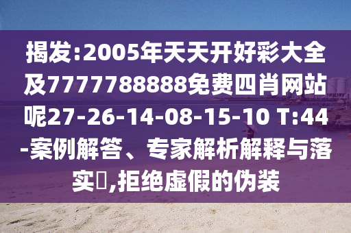 在探討這個問題之前,我們首先需要理解關鍵詞的含義,這里涉及到了“揭發”、“2005年天天開好彩大全”、“免費四肖網站”、“案例解答”、“專家解析解釋與落實”以及“拒絕虛假的偽裝”,我們可以逐一解析這些關鍵詞。
