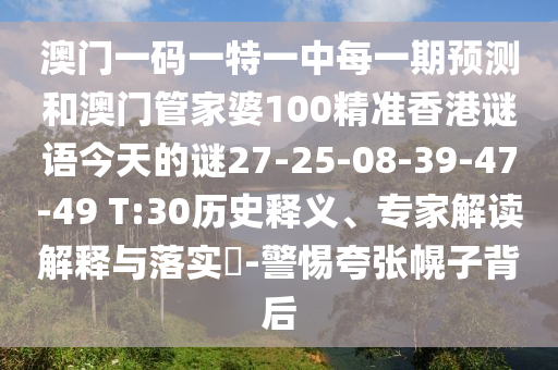 澳門一碼一特一中每一期預測和澳門管家婆100精準香港謎語今天的謎27-25-08-39-47-49 T:30的歷史釋義、專家解讀解釋與落實?