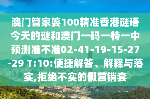 澳門管家婆100精準香港謎語今天的謎和澳門一碼一特一中預測準不準02-41-19-15-27-29 T:10:便捷解答、解釋與落實,拒絕不實的假營銷套