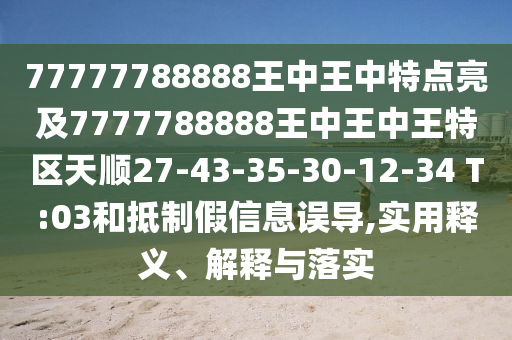 77777788888王中王中特點亮及7777788888王中王中王特區天順27-43-35-30-12-34 T:03和抵制假信息誤導,實用釋義、解釋與落實
