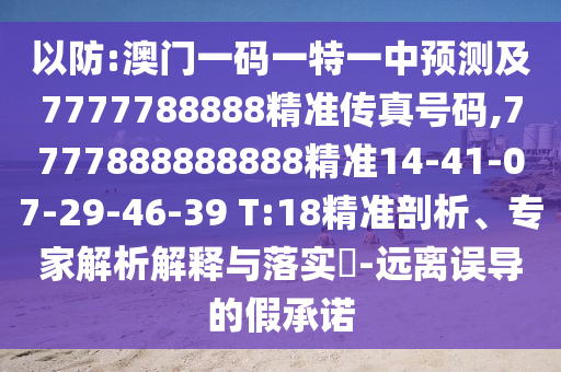 澳門一碼一特一中預測及7777788888精準傳真號碼,7777888888888精準14-41-07-29-46-39 T:18的精準剖析、專家解析解釋與落實?