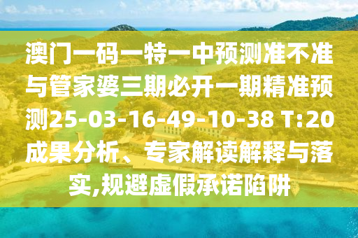 澳門一碼一特一中預測準不準與管家婆三期必開一期精準預測25-03-16-49-10-38 T:20的成果分析、專家解讀解釋與落實