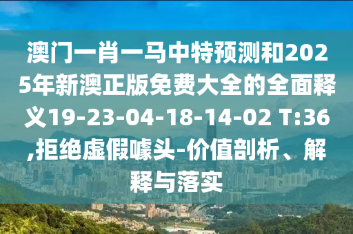 澳門一肖一馬中特預測和2025年新澳正版免費大全的全面釋義19-23-04-18-14-02 T:36,拒絕虛假噱頭-價值剖析、解釋與落實