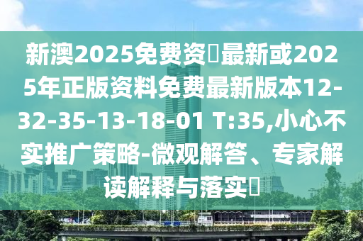 新澳2025免費資枓最新或2025年正版資料免費最新版本12-32-35-13-18-01 T:35,小心不實推廣策略-微觀解答、專家解讀解釋與落實?