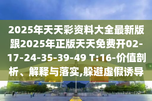 2025年天天彩資料大全最新版跟2025年正版天天免費開02-17-24-35-39-49 T:16-價值剖析、解釋與落實,躲避虛假誘導
