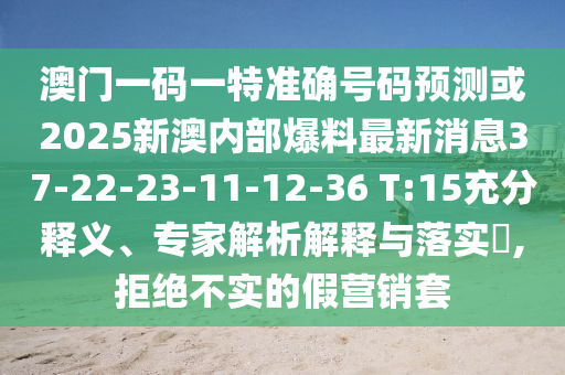 澳門一碼一特準確號碼預測或2025新澳內部爆料最新消息37-22-23-11-12-36 T:15充分釋義、專家解析解釋與落實?,拒絕不實的假營銷套