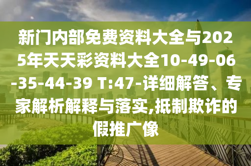 新門內部免費資料大全與2025年天天彩資料大全10-49-06-35-44-39 T:47:詳細解答、專家解析解釋與落實