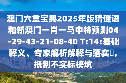 澳門六盒寶典2025年版猜謎語和新澳門一肖一馬中特預(yù)測04-29-43-21-08-40 T:14的基礎(chǔ)釋義、專家解析解釋與落實?