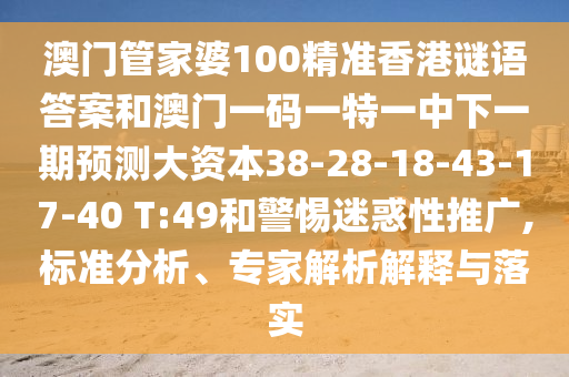 澳門管家婆100精準香港謎語答案和澳門一碼一特一中下一期預測大資本38-28-18-43-17-40 T:49的標準分析、專家解析解釋與落實