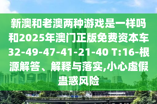 新澳和老澳兩種游戲是一樣嗎和2025年澳門(mén)正版免費(fèi)資本車(chē)32-49-47-41-21-40 T:16:根源解答、解釋與落實(shí)