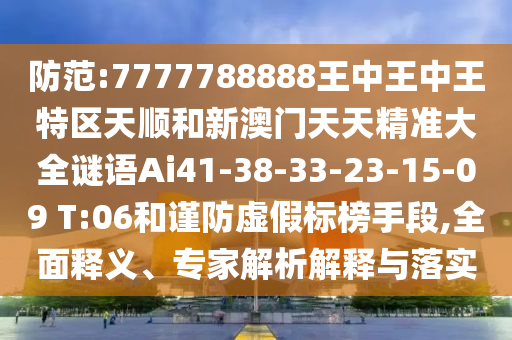 防范:7777788888王中王中王特區天順和新澳門天天精準大全謎語Ai41-38-33-23-15-09 T:06和謹防虛假標榜手段,全面釋義、專家解析解釋與落實