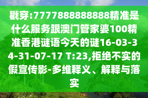 戳穿:7777888888888精準是什么服務跟澳門管家婆100精準香港謎語今天的謎16-03-34-31-07-17 T:23,拒絕不實的假宣傳影-多維釋義、解釋與落實