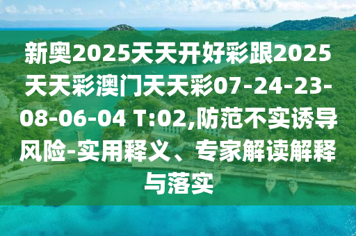 新奧2025天天開好彩跟2025天天彩澳門天天彩07-24-23-08-06-04 T:02,防范不實誘導風險-實用釋義、專家解讀解釋與落實