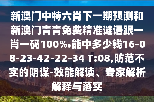 新澳門中特六肖下一期預測和新澳門青青免費精準謎語跟一肖一碼100‰能中多少錢16-08-23-42-22-34 T:08:效能解讀、專家解析解釋與落實