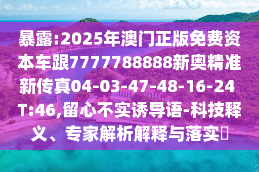 暴露:2025年澳門正版免費資本車跟7777788888新奧精準(zhǔn)新傳真04-03-47-48-16-24 T:46,留心不實誘導(dǎo)語-科技釋義、專家解析解釋與落實?