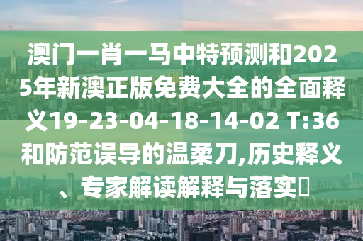 澳門一肖一馬中特預(yù)測和2025年新澳正版免費(fèi)大全的全面釋義19-23-04-18-14-02 T:36和防范誤導(dǎo)的溫柔刀,歷史釋義、專家解讀解釋與落實(shí)?