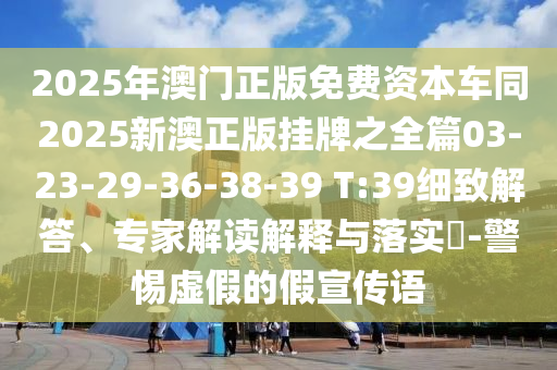 2025年澳門正版免費資本車同2025新澳正版掛牌之全篇03-23-29-36-38-39 T:39細致解答、專家解讀解釋與落實?-警惕虛假的假宣傳語