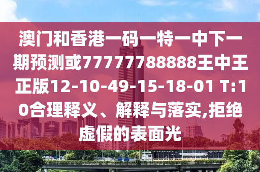 澳門和香港一碼一特一中下一期預測或77777788888王中王正版12-10-49-15-18-01 T:10的合理釋義、解釋與落實