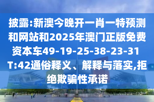 披露:新澳今晚開一肖一特預測和網站和2025年澳門正版免費資本車49-19-25-38-23-31 T:42通俗釋義、解釋與落實,拒絕欺騙性承諾