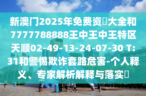 尊敬的讀者們:今天我們將深入探討關鍵詞:“新澳門2025年免費資枓大全”、“7777788888王中王中王特區天順”以及一些特定數字組合,同時強調警惕與之相關的欺詐套路及其危害,我們將從個人釋義、專家解析和如何落實警惕三個方面進行闡述。