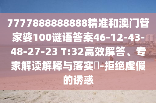 7777888888888精準和澳門管家婆100謎語答案46-12-43-48-27-23 T:32的高效解答、專家解讀解釋與落實?
