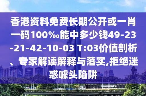 香港資料免費長期公開或一肖一碼100‰能中多少錢49-23-21-42-10-03 T:03的價值剖析、專家解讀解釋與落實