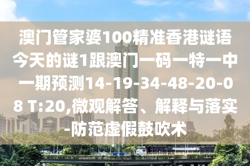 澳門管家婆100精準香港謎語今天的謎1跟澳門一碼一特一中一期預測14-19-34-48-20-08 T:20:微觀解答、解釋與落實