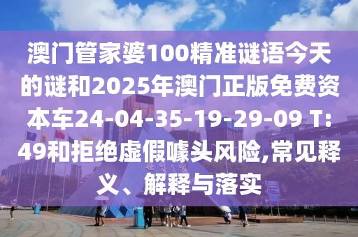 澳門管家婆100精準謎語今天的謎和2025年澳門正版免費資本車24-04-35-19-29-09 T:49和拒絕虛假噱頭風險,常見釋義、解釋與落實