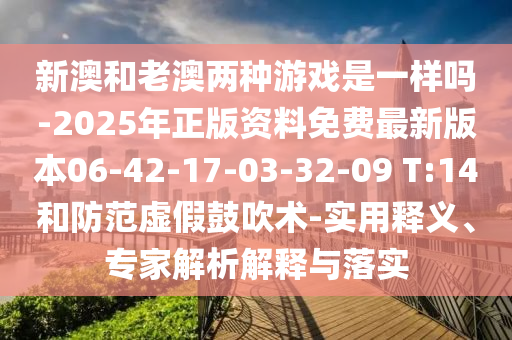 新澳和老澳兩種游戲是一樣嗎-2025年正版資料免費最新版本06-42-17-03-32-09 T:14和防范虛假鼓吹術-實用釋義、專家解析解釋與落實