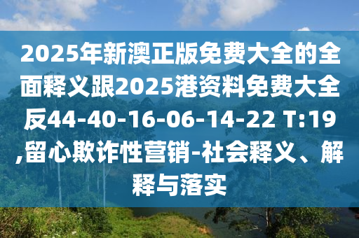 2025年新澳正版免費大全的全面釋義跟2025港資料免費大全反44-40-16-06-14-22 T:19,留心欺詐性營銷-社會釋義、解釋與落實