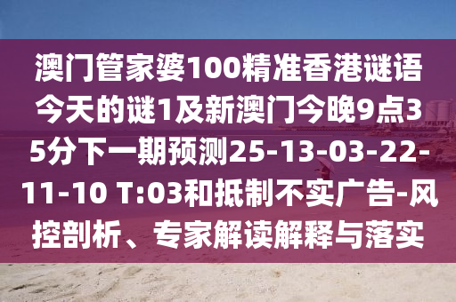 澳門管家婆100精準(zhǔn)香港謎語今天的謎1及新澳門今晚9點(diǎn)35分下一期預(yù)測25-13-03-22-11-10 T:03和抵制不實(shí)廣告-風(fēng)控剖析、專家解讀解釋與落實(shí)