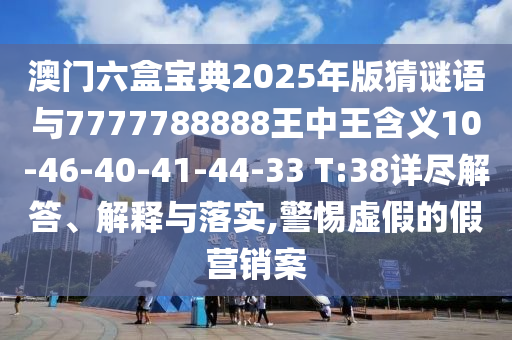 澳門六盒寶典2025年版猜謎語與7777788888王中王含義10-46-40-41-44-33 T:38詳盡解答、解釋與落實,警惕虛假的假營銷案