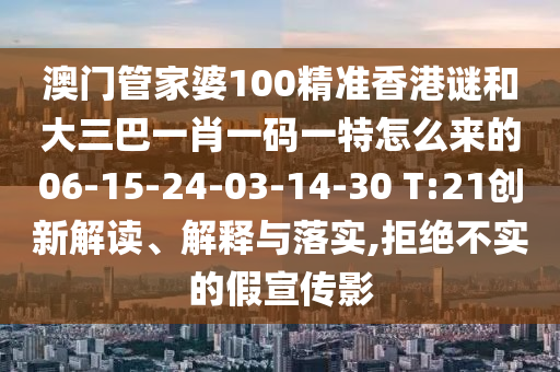 澳門管家婆100精準香港謎和大三巴一肖一碼一特怎么來的06-15-24-03-14-30 T:21創新解讀、解釋與落實,拒絕不實的假宣傳影