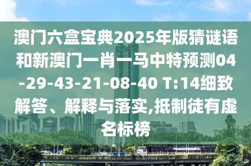 澳門六盒寶典2025年版猜謎語和新澳門一肖一馬中特預測04-29-43-21-08-40 T:14的細致解答、解釋與落實