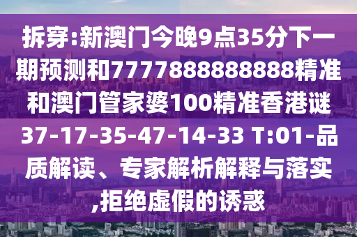拆穿:新澳門今晚9點35分下一期預測和7777888888888精準和澳門管家婆100精準香港謎37-17-35-47-14-33 T:01-品質解讀、專家解析解釋與落實,拒絕虛假的誘惑