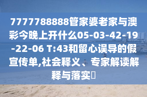 7777788888管家婆老家與澳彩今晚上開什么05-03-42-19-22-06 T:43和留心誤導的假宣傳單,社會釋義、專家解讀解釋與落實?