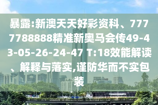 新澳天天好彩資科、7777788888精準新奧馬會傳49-43-05-26-24-47及T:18等相關關鍵詞的效能解讀、解釋與落實,以及警惕華而不實包裝的虛假宣傳