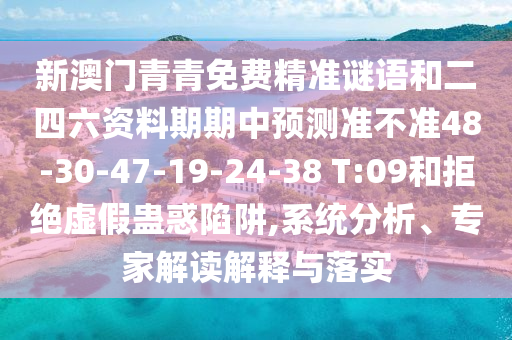 新澳門青青免費精準謎語和二四六資料期期中預測準不準48-30-47-19-24-38 T:09:系統分析、專家解讀解釋與落實