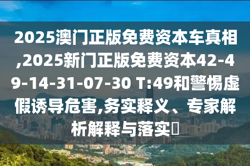 2025澳門正版免費資本車真相,2025新門正版免費資本42-49-14-31-07-30 T:49和警惕虛假誘導危害,務實釋義、專家解析解釋與落實?