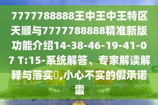 7777788888王中王中王特區(qū)天順與7777788888精準(zhǔn)新版功能介紹”等相關(guān)內(nèi)容的全面釋義、解釋與落實(shí),以及公眾對(duì)于虛假宣傳的警惕