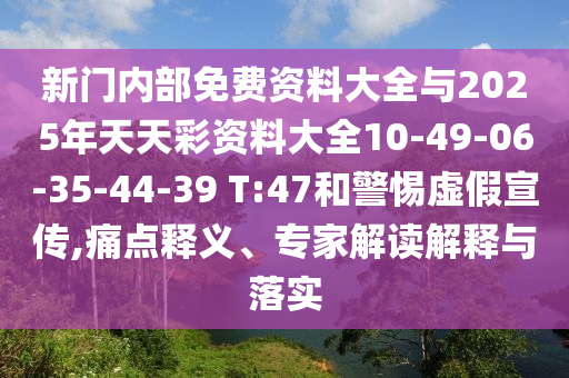 新門內(nèi)部免費資料大全與2025年天天彩資料大全10-49-06-35-44-39 T:47和警惕虛假宣傳,痛點釋義、專家解讀解釋與落實